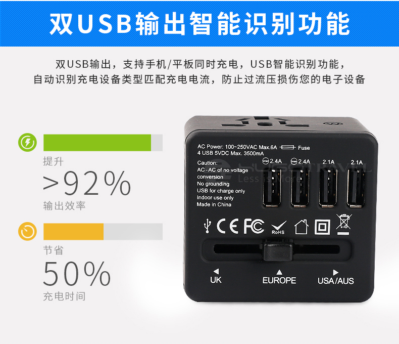產(chǎn)品輸出:4個USB 5VDC 5V3500mA知能識別